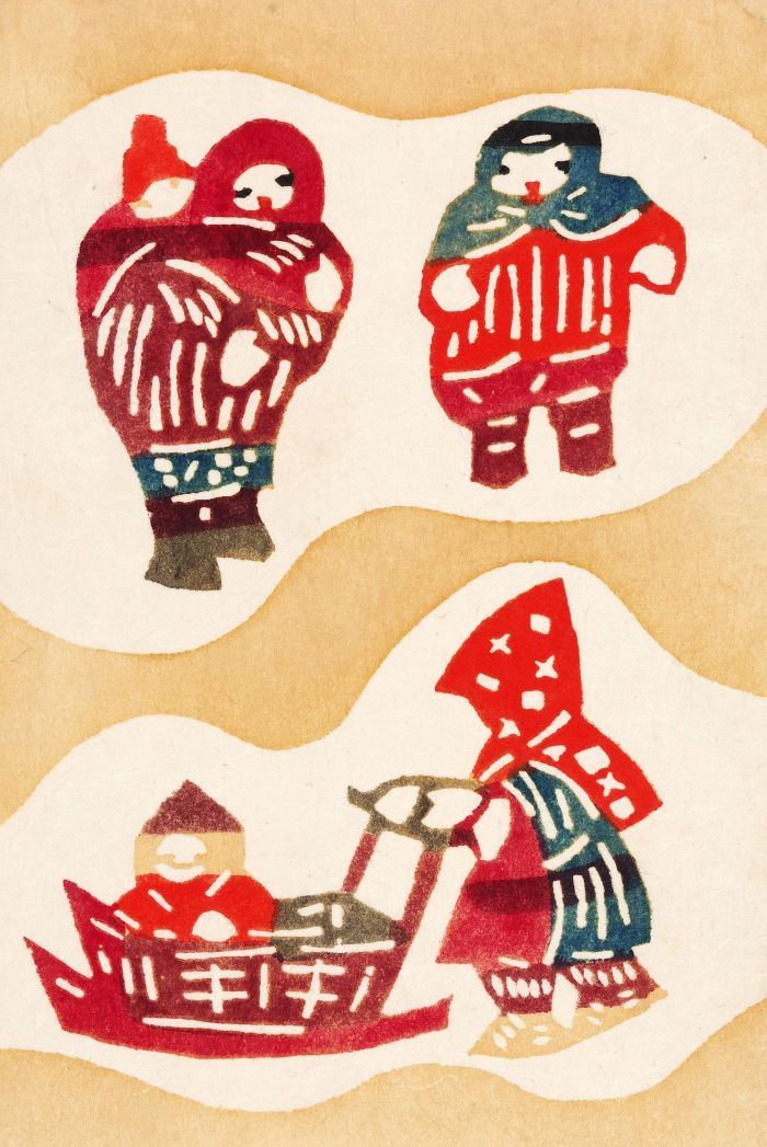 ![]() 『やく・すく・おる』(1966)より 「生まれるかたち」 ![]() 「窯出し文のれん」(1970) ![]() 型染絵葉書「雪国の人々」(1952ころ) ![]() 『十三妹挿絵集』(1968)より 「十三妹と白玉堂」 ![]() 『浴女』(1968)より |