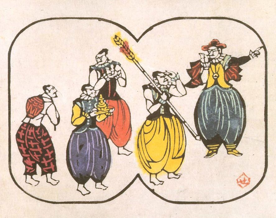 ![]() 『やく・すく・おる』(1966)より 「生まれるかたち」 ![]() 「窯出し文のれん」(1970) ![]() 型染絵葉書「雪国の人々」(1952ころ) ![]() 『十三妹挿絵集』(1968)より 「十三妹と白玉堂」 ![]() 『浴女』(1968)より |